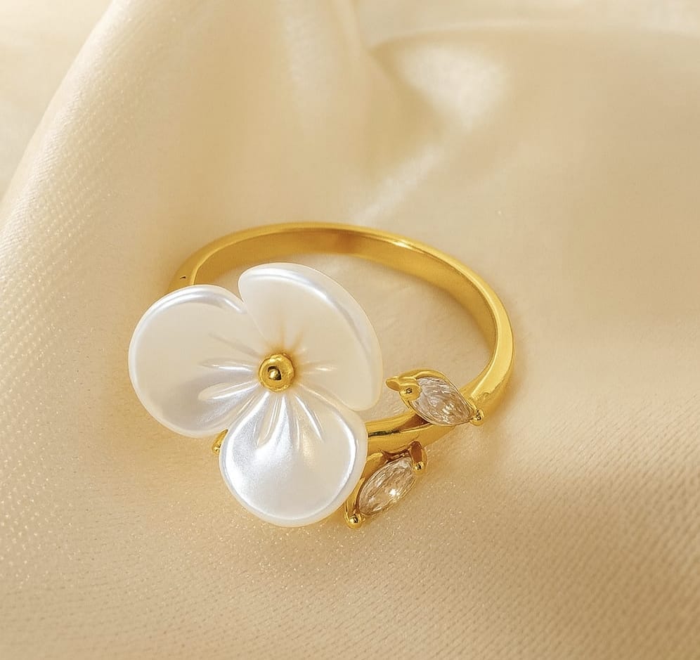 Un anillo de nácar simboliza la pureza, la belleza, la feminidad y la calma, conectando al portador con la tranquilidad del mar y promoviendo el equilibrio emocional y la armonía. Se considera un amuleto protector, aumenta la intuición y fortalece los lazos de amistad y amor.