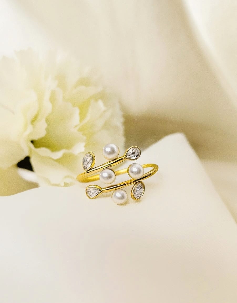 Un anillo de perla y diamante simboliza la unión de la pureza y la eternidad, representando el compromiso con una combinación de la delicadeza femenina de la perla y la fuerza duradera del diamante. Mientras que los diamantes son el símbolo de la fuerza, la eternidad y la fortaleza, las perlas representan pureza, sabiduría y feminidad. Juntos, crean un anillo con un simbolismo de amor eterno y compromiso mutuo.