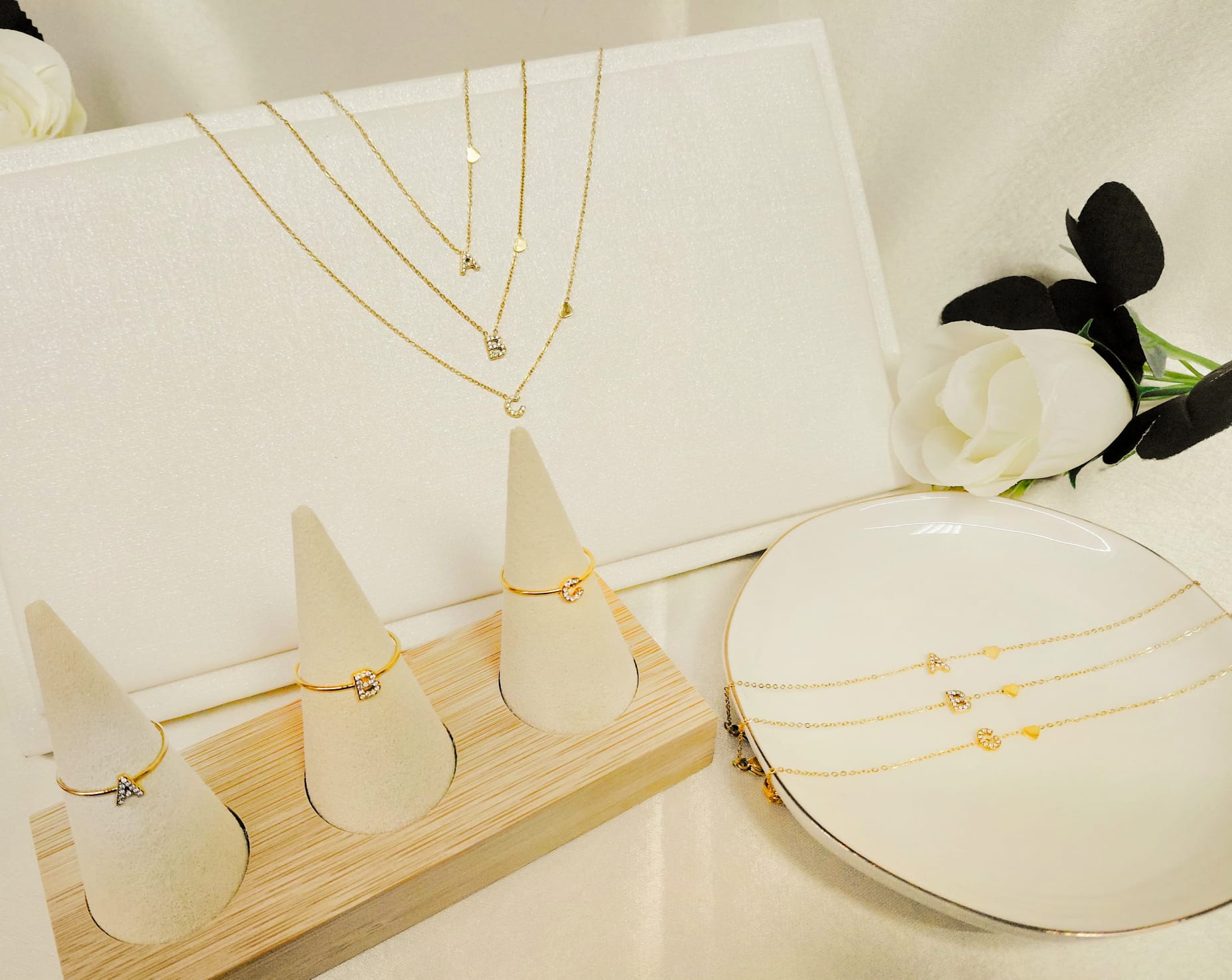 - Diseño: Personalizado con una inicial, moderno y sofisticado, adornado con circonitas blancas que le dan un brillo especial.