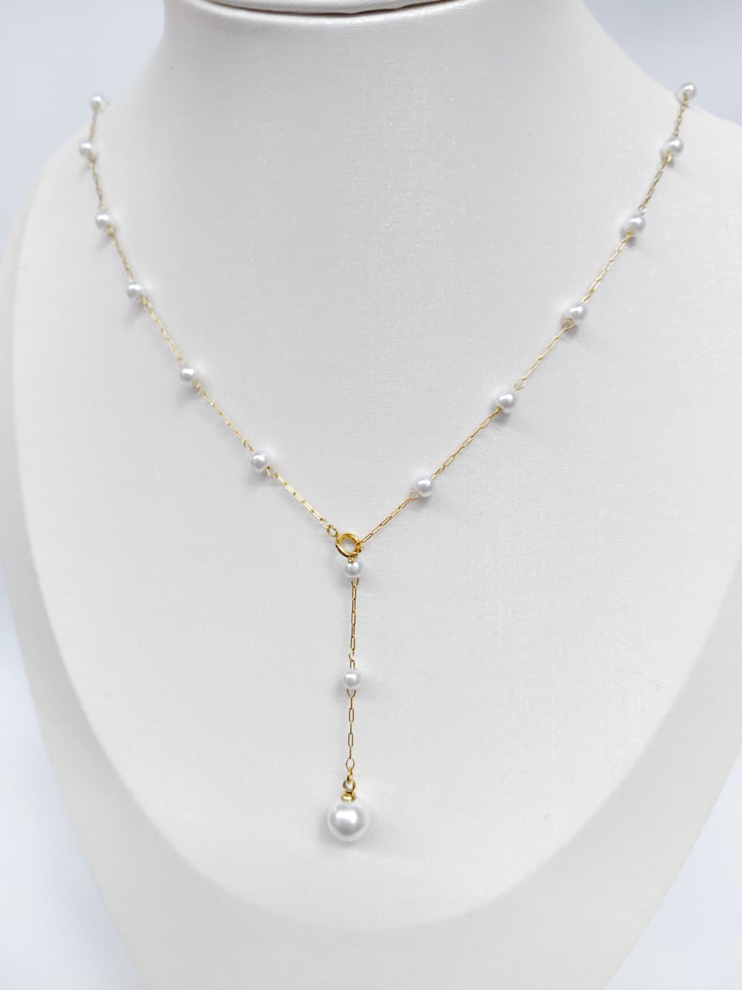 Un collar de perlas en forma de Y puede interpretarse como un símbolo de elegancia, pureza, sabiduría y riqueza, además de un amuleto de buena suerte y protección. La forma de “Y” (o gargantilla con una cadena que cae en el centro) en sí puede acentuar la figura del portador, aportando un toque de distinción y modernidad al estilo clásico de un collar de perlas.