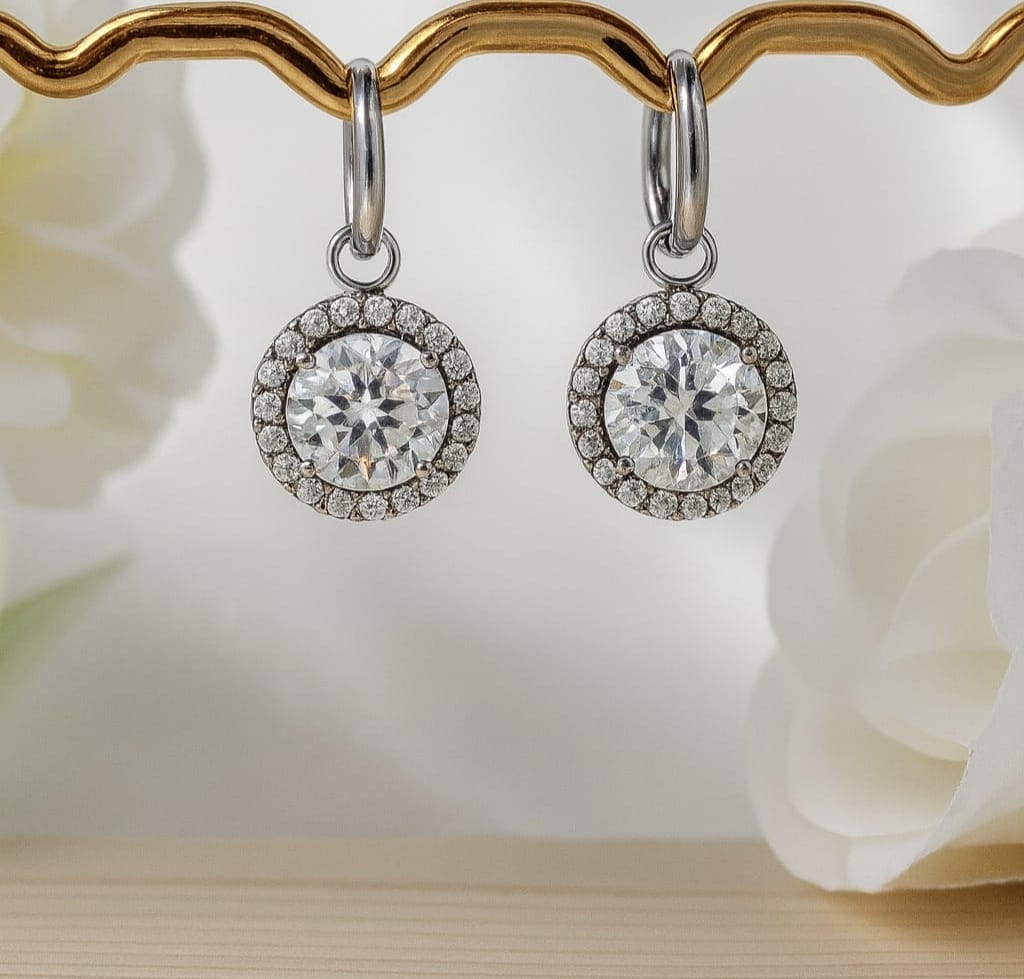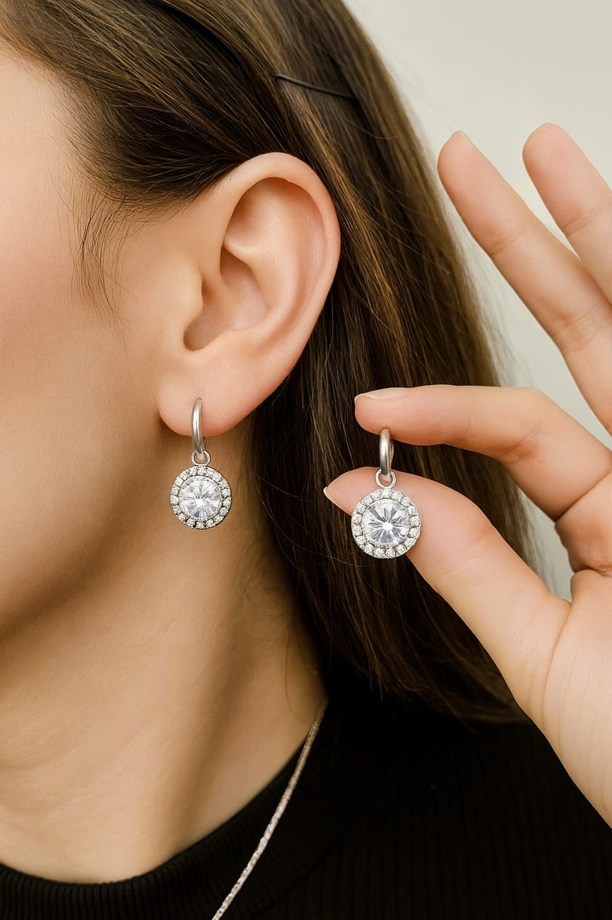 Un “pendiente de circonita” es un pendiente cuyo adorno es una circonita, una gema sintética creada en laboratorio a partir de óxido de circonio, con un bajo coste, gran durabilidad y un brillo similar al del diamante. El término se refiere a la joya en sí (el pendiente) con la piedra decorativa (la circonita), que se usa para adornar, aportar brillo y belleza.