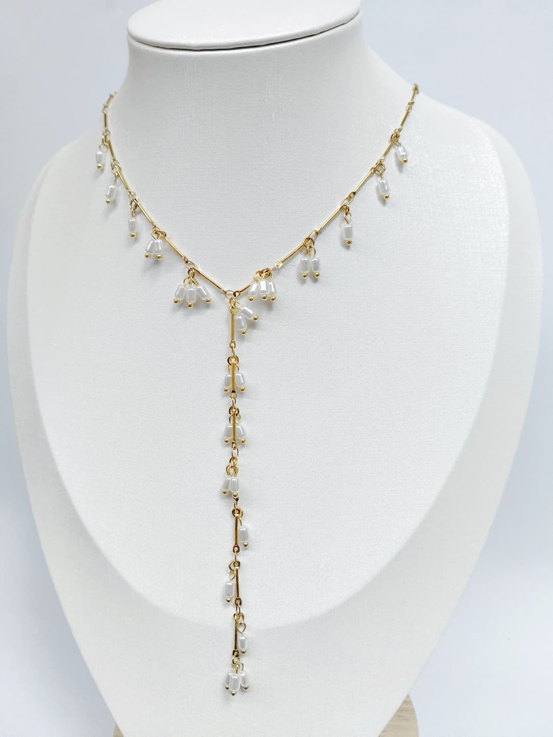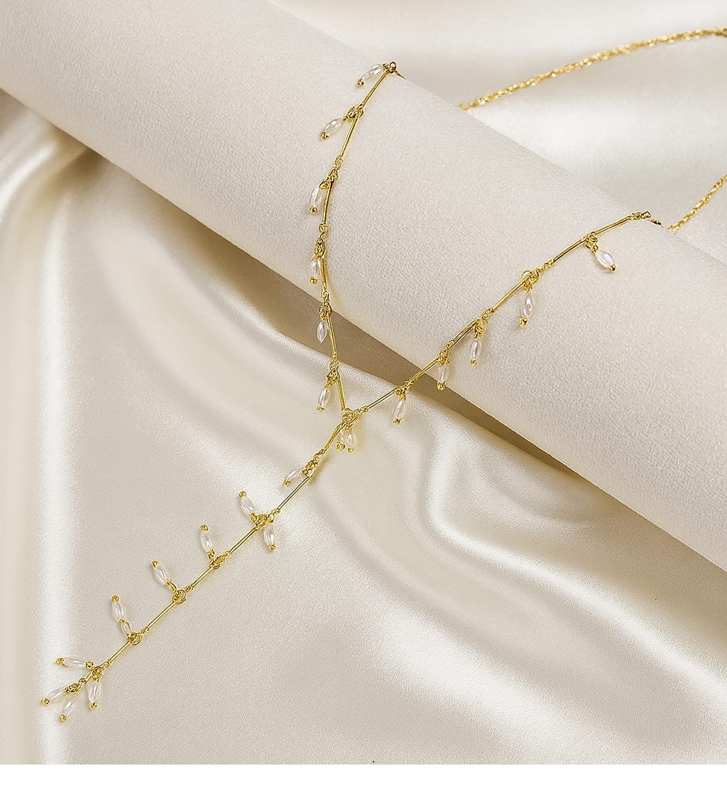 Un collar de perlas en forma de Y puede interpretarse como un símbolo de elegancia, pureza, sabiduría y riqueza, además de un amuleto de buena suerte y protección. La forma de “Y” (o gargantilla con una cadena que cae en el centro) en sí puede acentuar la figura del portador, aportando un toque de distinción y modernidad al estilo clásico de un collar de perlas.