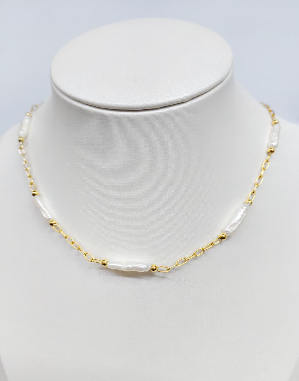 Un collar de perlas alargadas cultivadas combina el significado de las perlas (sofisticación, pureza, lealtad, sabiduría) con la forma alargada, que añade un toque moderno y versátil, y su origen cultivado, que democratiza el lujo y lo hace más accesible que las perlas naturales, sin disminuir su belleza o valor intrínseco.