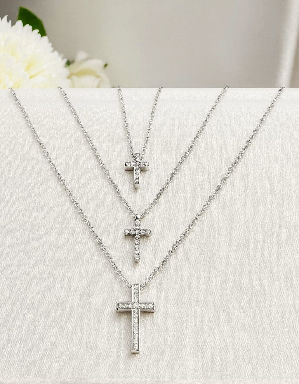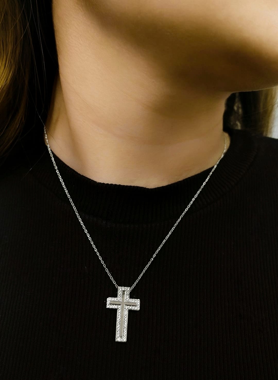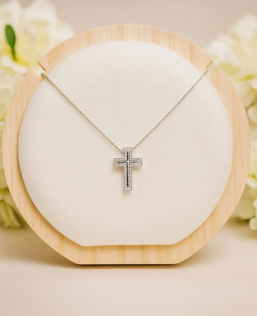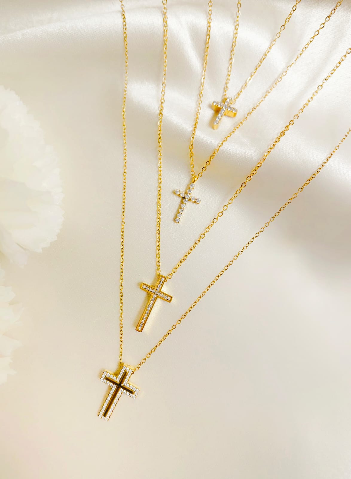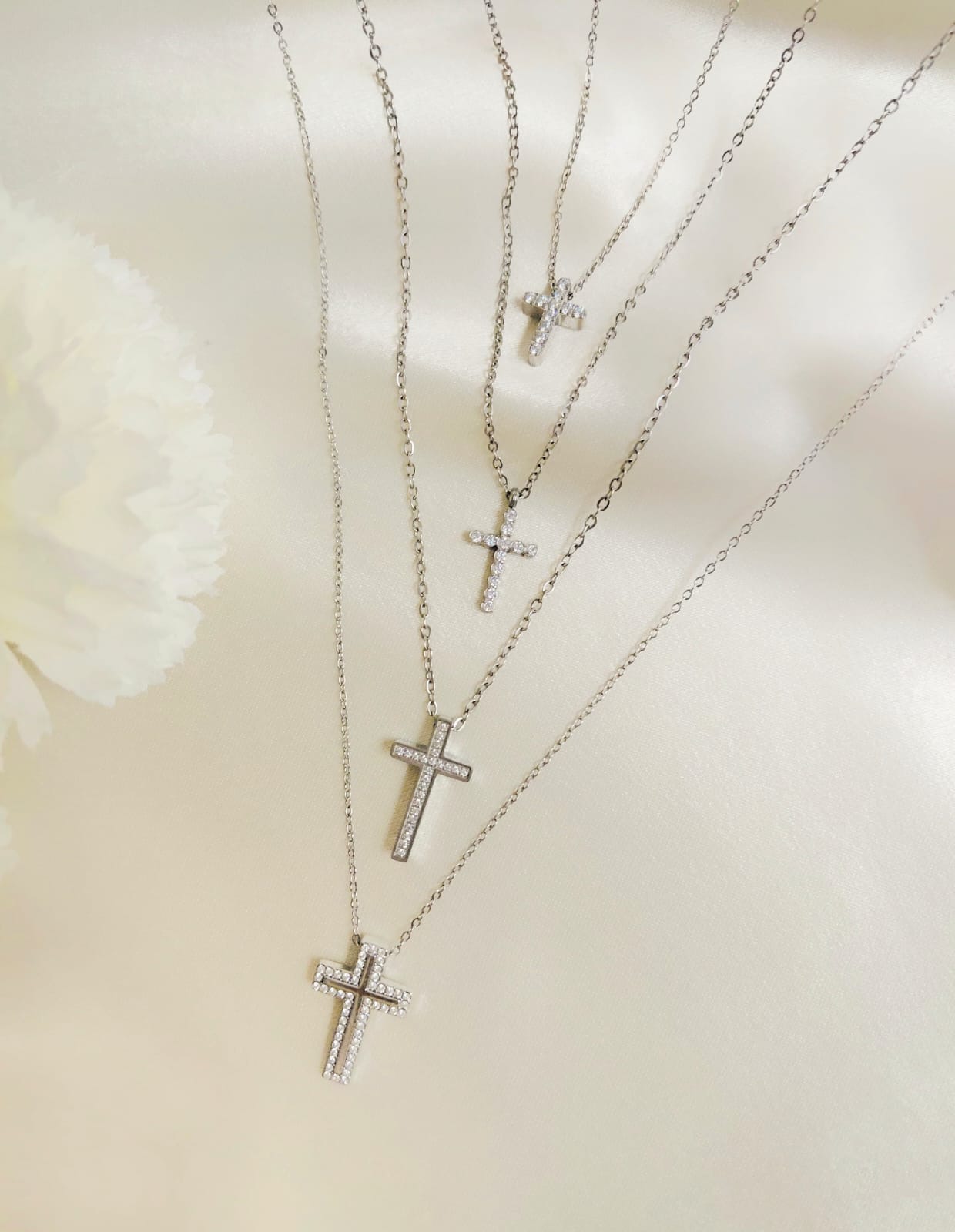 Las cruces con circonitas son colgantes o dijes de joyería realizados en plata u oro con piedras de zirconia cúbica, ofreciendo un brillo elegante similar al de los diamantes.