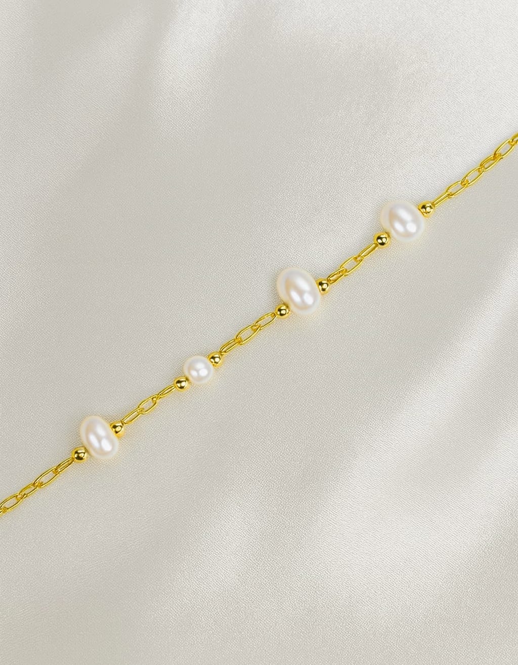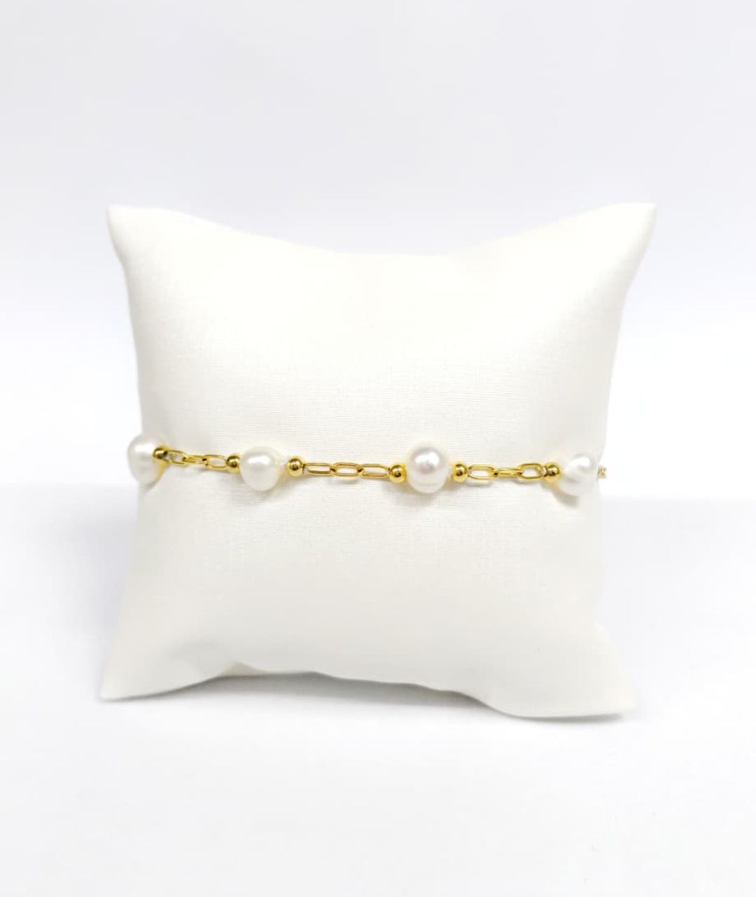 Las perlas de agua dulce simbolizan la pureza, la inocencia, la riqueza, la sabiduría y la calma, y son apreciadas por su belleza natural y por ser un reflejo de la elegancia y la lealtad. Se forman en mejillones de ríos y lagos y, en joyería, se asocian con la claridad mental, la paz interior y la prosperidad. Una pulsera que puedes llevar dia a dia.